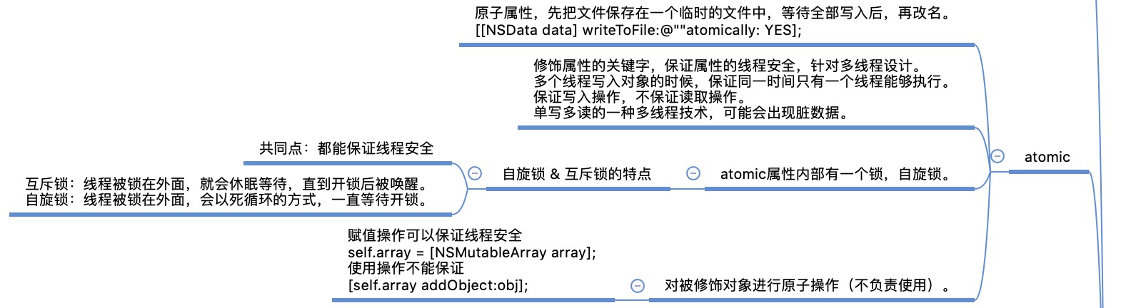 atomic使用的是自旋锁,主要用于赋值操作等轻量操作(散列表,引用计数,弱引用指针赋值),而互斥锁一般都是锁线程,比如单例。
